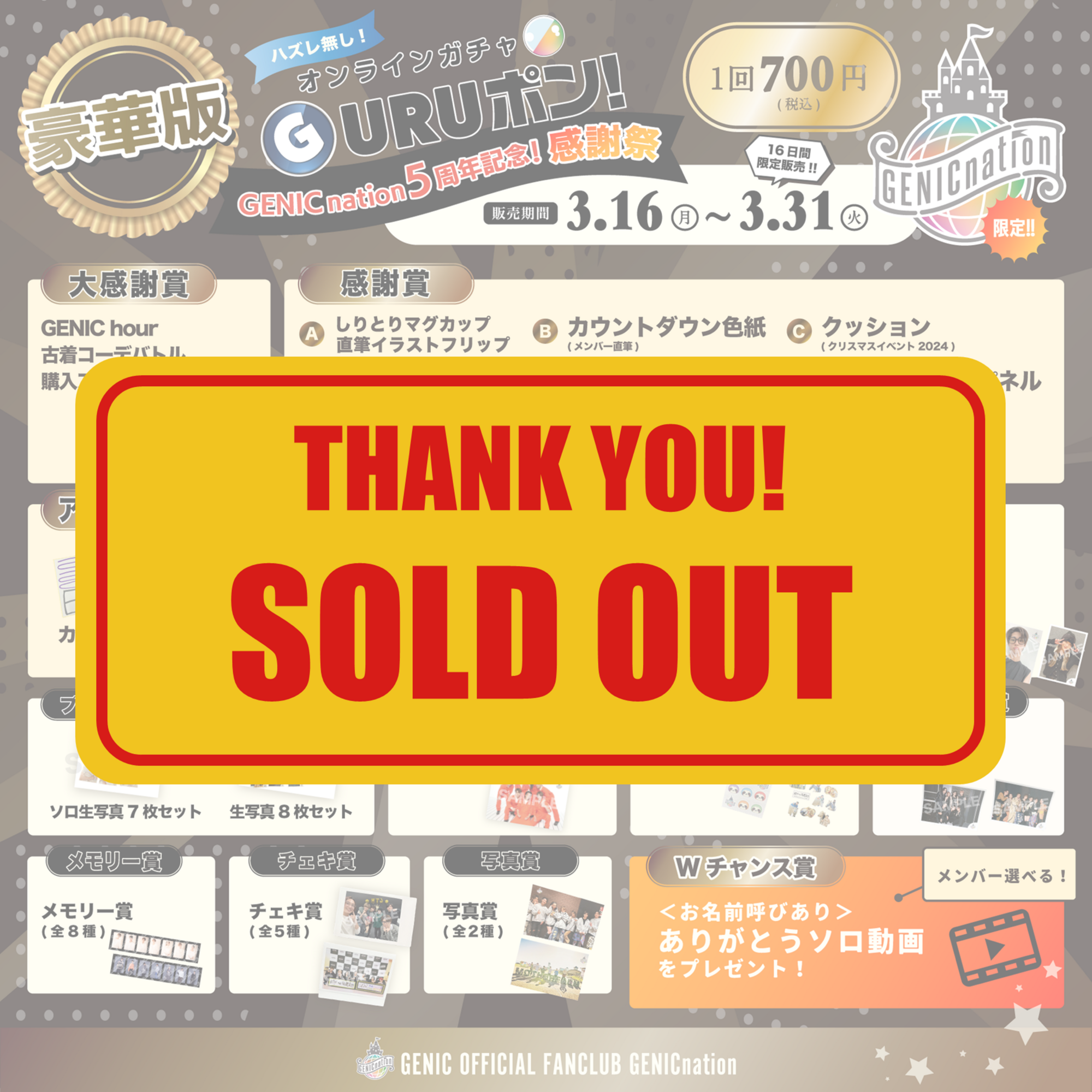 GENICnation 5周年記念! 感謝祭 豪華版GURUポン!実施!